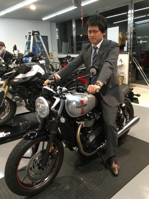 シルバーのストリートツインが試乗車です。